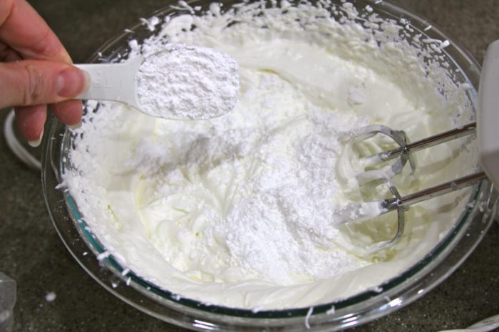 - Add powdered sugar, gently mix in