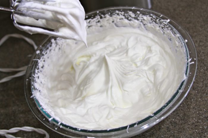 - Pour whipping cream into a large mixing bowl