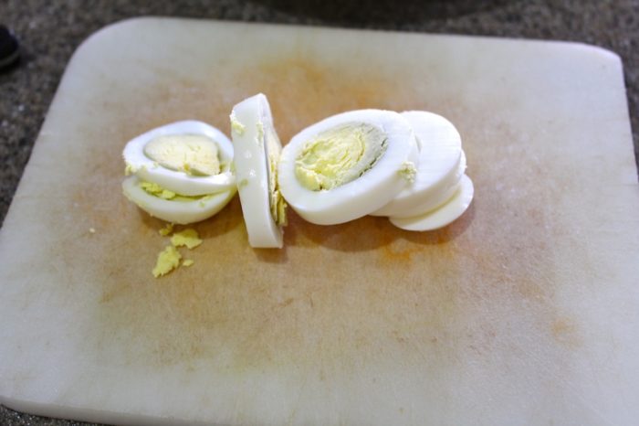 - Slice hard boiled egg