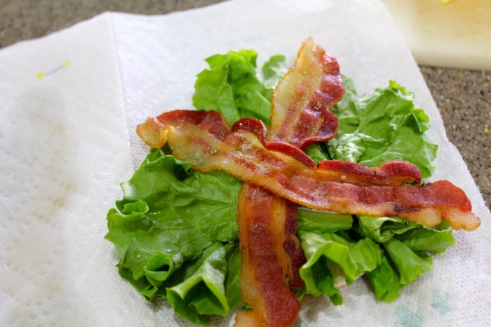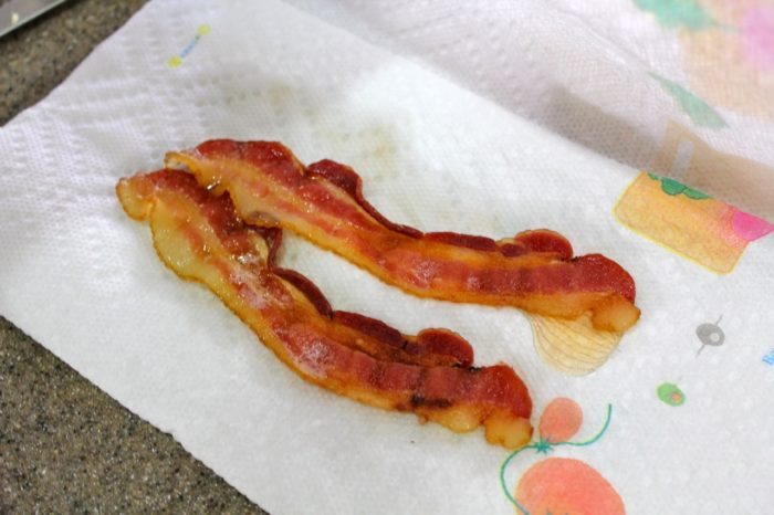 - Microwave bacon on paper towels to cook