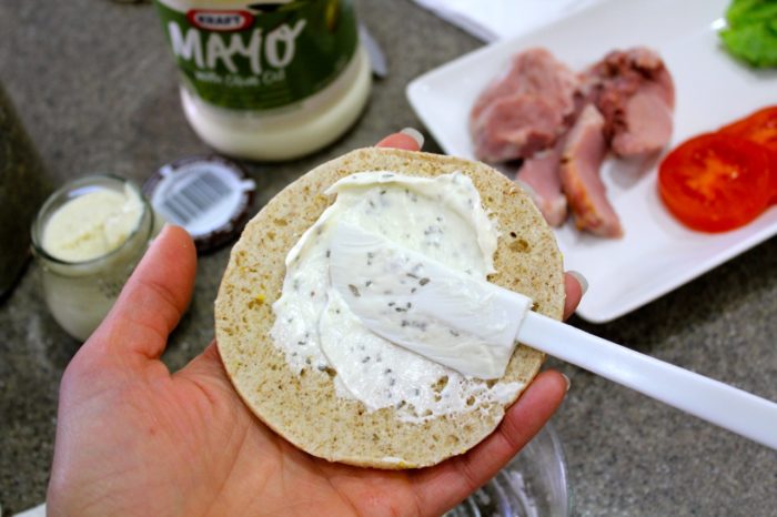 - To assemble sandwich, spread the mayonnaise on the bottom half of bread