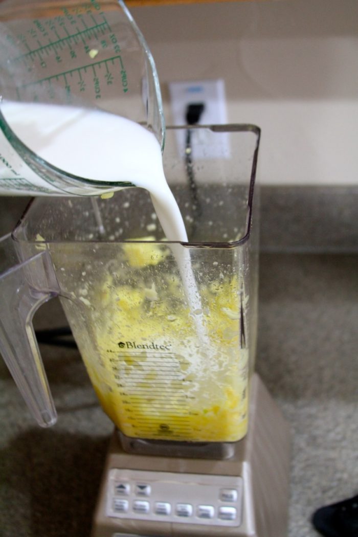 - Place coconut milk and pineapple in blender, blend until smooth.