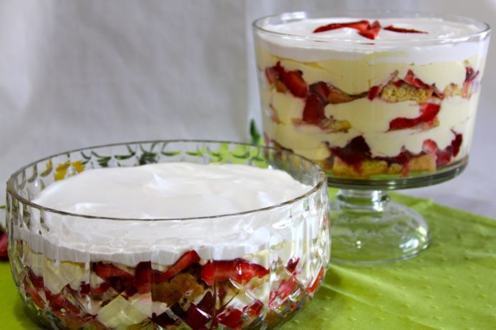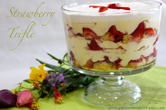 Strawberry Trifle how else do I describe this Trifle than by saying it’s a beautiful blend of flavors, strawberry with creaminess, AND just plain delicious!!   It’s a wonderful dessert to make for Mothers’ Day which is coming on Sunday, May 13th!!