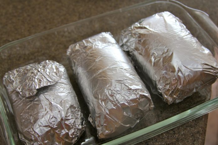 - Place each chicken breast on a piece of foil large enough to wrap it in. Pound chicken breast with a mallet until evenly flattened.