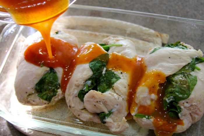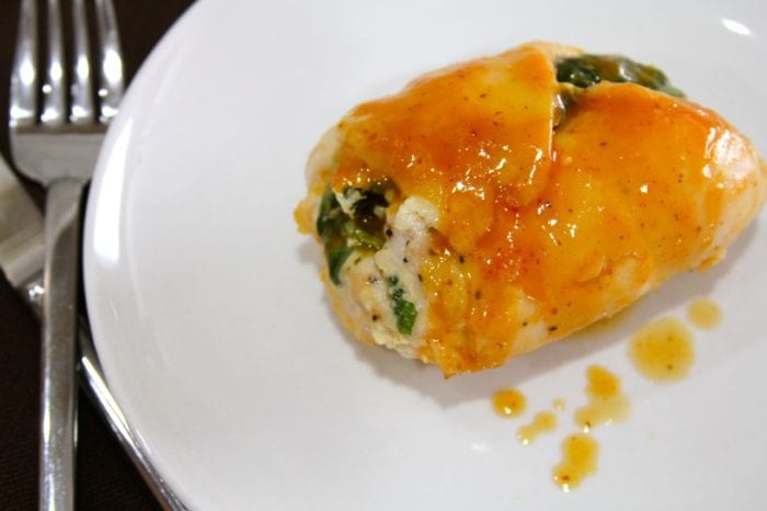 He sent me this Spinach and Feta Chicken recipe to make and to put up on the blog! It ended up being a combined effort because I couldn’t find the sauce he’d wanted SO, I used a Honey Mustard sauce of mine and it turned just plain delicious!!