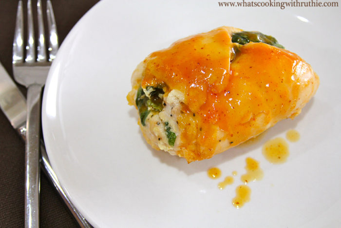 He sent me this Spinach and Feta Chicken recipe to make and to put up on the blog!  It ended up being a combined effort because I couldn’t find the sauce he’d wanted SO, I used a Honey Mustard sauce of mine and it turned just plain delicious!!