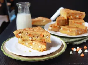Hi Jane… I used a 16×12 rimmed baking sheet and the bars are about 1/2 inch thick. Thanks for asking and I will go and specify in the recipe 🙂 These bars are super delicious!! Please stop by again soon. xoxo~ Ruthie