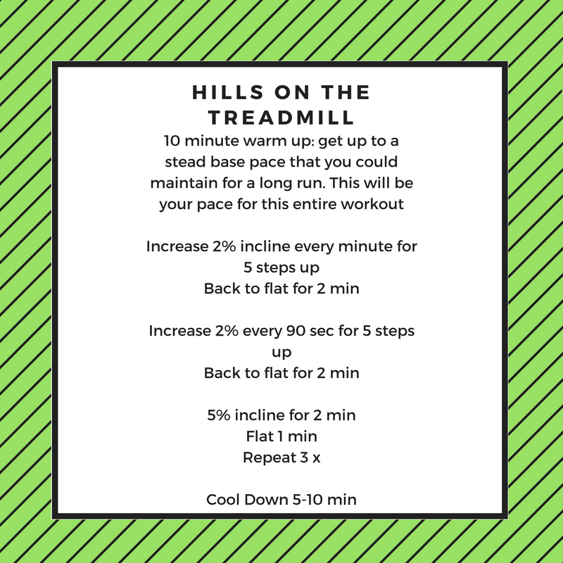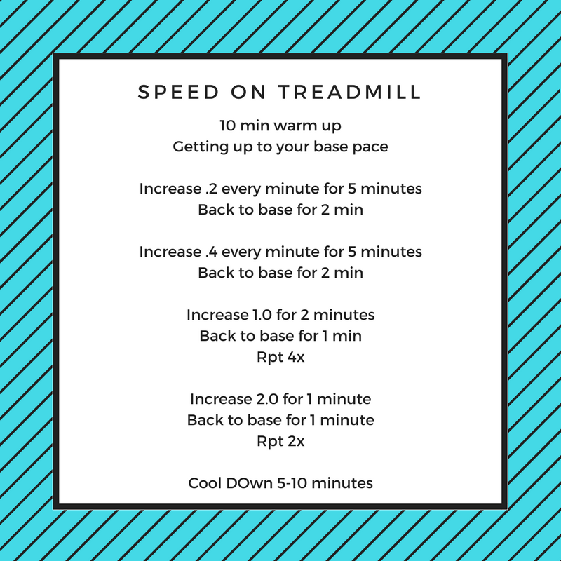 Summer schedules are crazy, at least at my house they are, which means I have to fit in runs and workouts whenever and where ever I can. In the heat of day with four kids at home I can’t necessarily head out for my run, those are the days when I am grateful for a treadmill. If I can get baby down for a nap and the other three busy with something I can sneak in a run in the basement, my seventy degree basement. I love having a workout plan for the treadmill, especially when I am really wishing for the open road, which means I am doing speed for hill work. Today we are doing both, or at least getting the option for both.