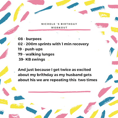 It is my birthday!!! I am one year away from 40 and to celebrate we need an awesome workout to celebrate this last year of my thirties. Of course we have to celebrate with a workout, celebrate all that my body can do as it ages another year.