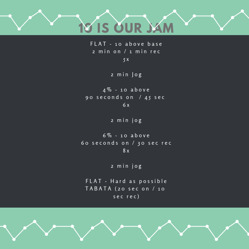 It has been a fun week. I live in an awesome neighborhood that has organized daily workouts, I have started teaching Tuesdays and love just getting to hang out and work up a sweat with my neighbors. I also get to sub treadmill class twice this week, another fun time with a fantastic group of people. I planned treadmill classes on a rest day, rest days I feel like a rock star and my classes tend to be a little harder than expected. Still doable, but a very solid challenge. Today I am sharing the love with this fantastic speed workout.