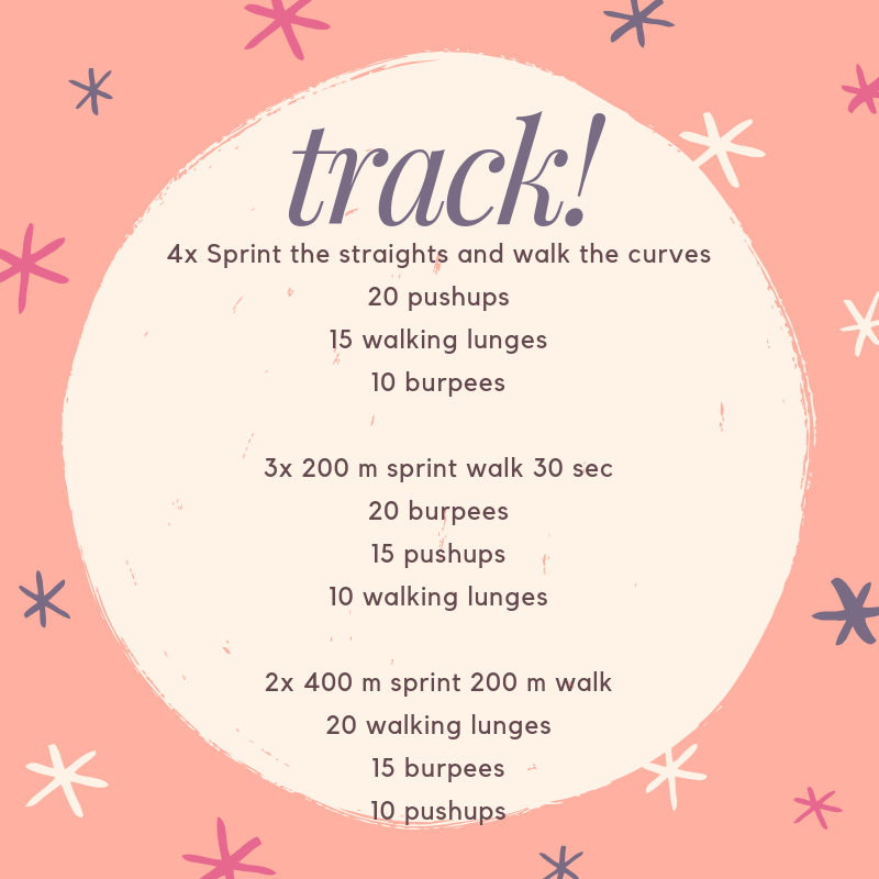 Today we are hitting the track for a circuit. No weights needed. Just need some water and a kick a** attitude!