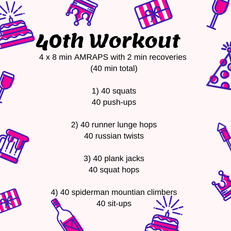 Speaking of workout…..we are celebrating my 40th with workout. That way you can all celebrate with me.