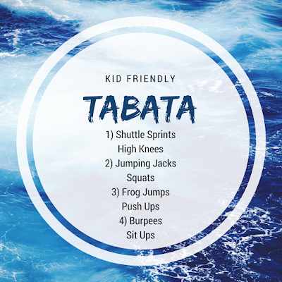 With all that being said let’s get into this week’s workout, its’s TABATA time! A kid friendly Tabata to get everyone hot, sweaty, and ready for a cool down at the pool.