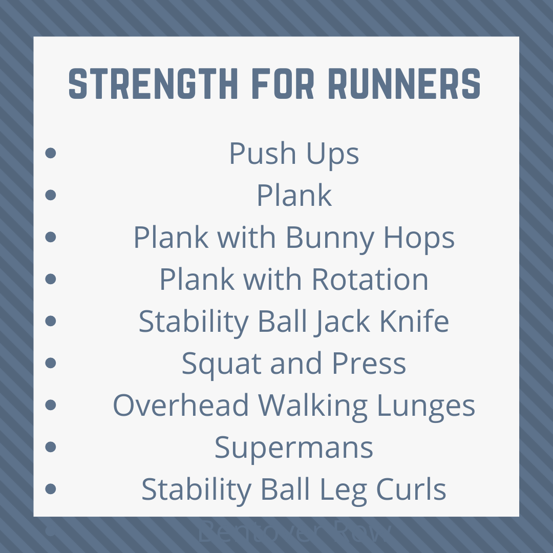 This doesn’t mean you should grab your weights and start doing a bunch of bicep curls, as a runner that isn’t going to help you at all. Instead you want to focus on a strong core and muscles that will keep you running.