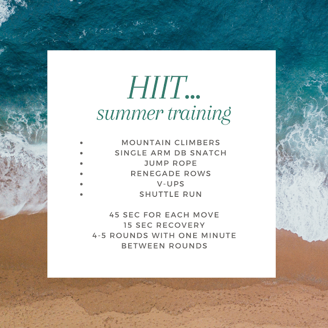 Today we are summer training with a HIIT workout that will get my stop and go muscles ready to fire with my stop and go kids.