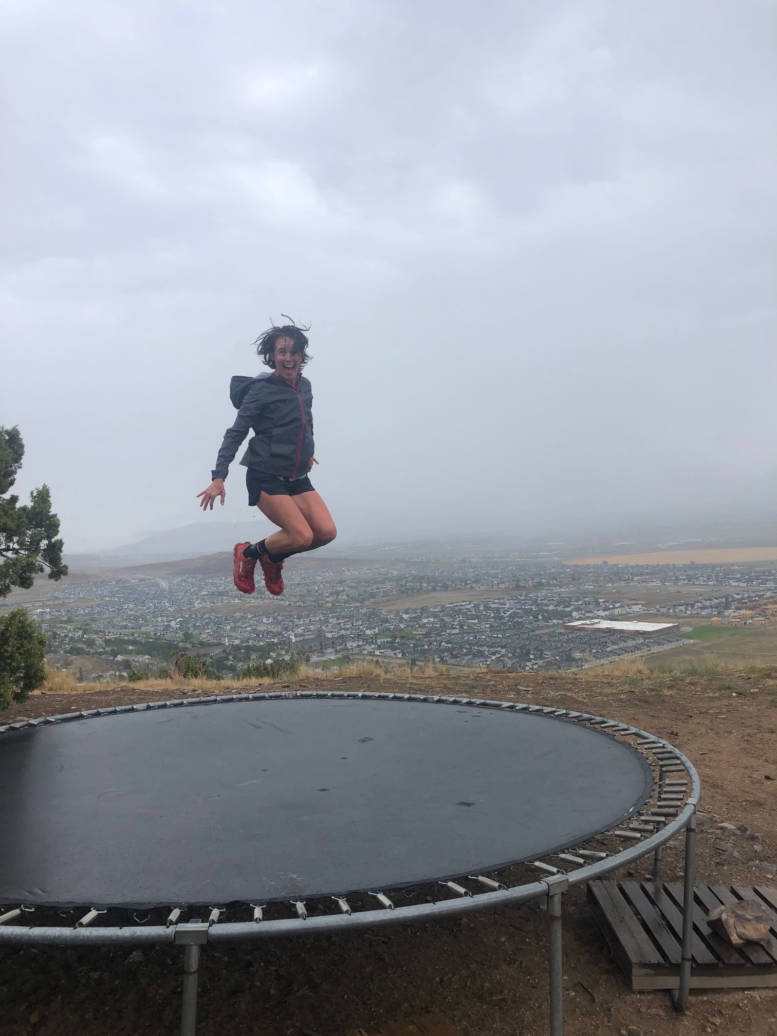 It is my birthday week! I have a few friends that go for the birthday month, but I am happy to keep it at a week. On my birthday I headed out for a rainy trail run up to a trampoline that someone decided to set up at a great overlook.