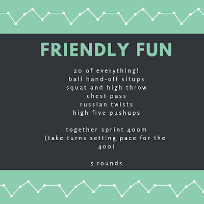 We are grabbing a weighted med ball and doing everything together. Enjoy! Push each other! And go get some coffee after!